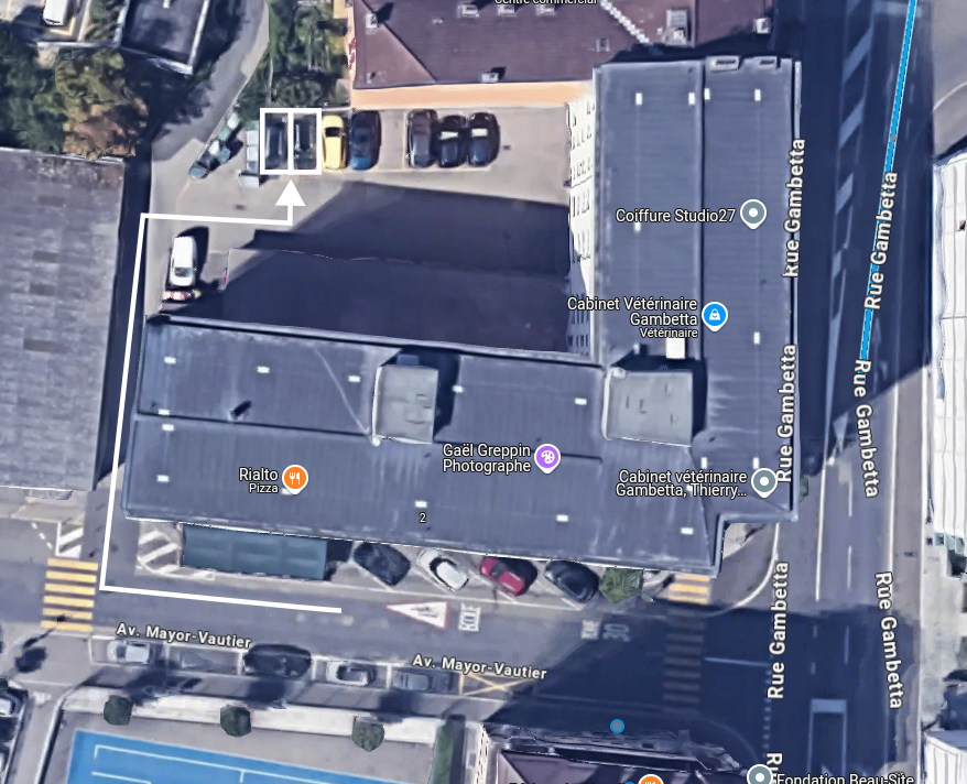 Deux places de parc sont situées dans la cour intérieure de l’immeuble.